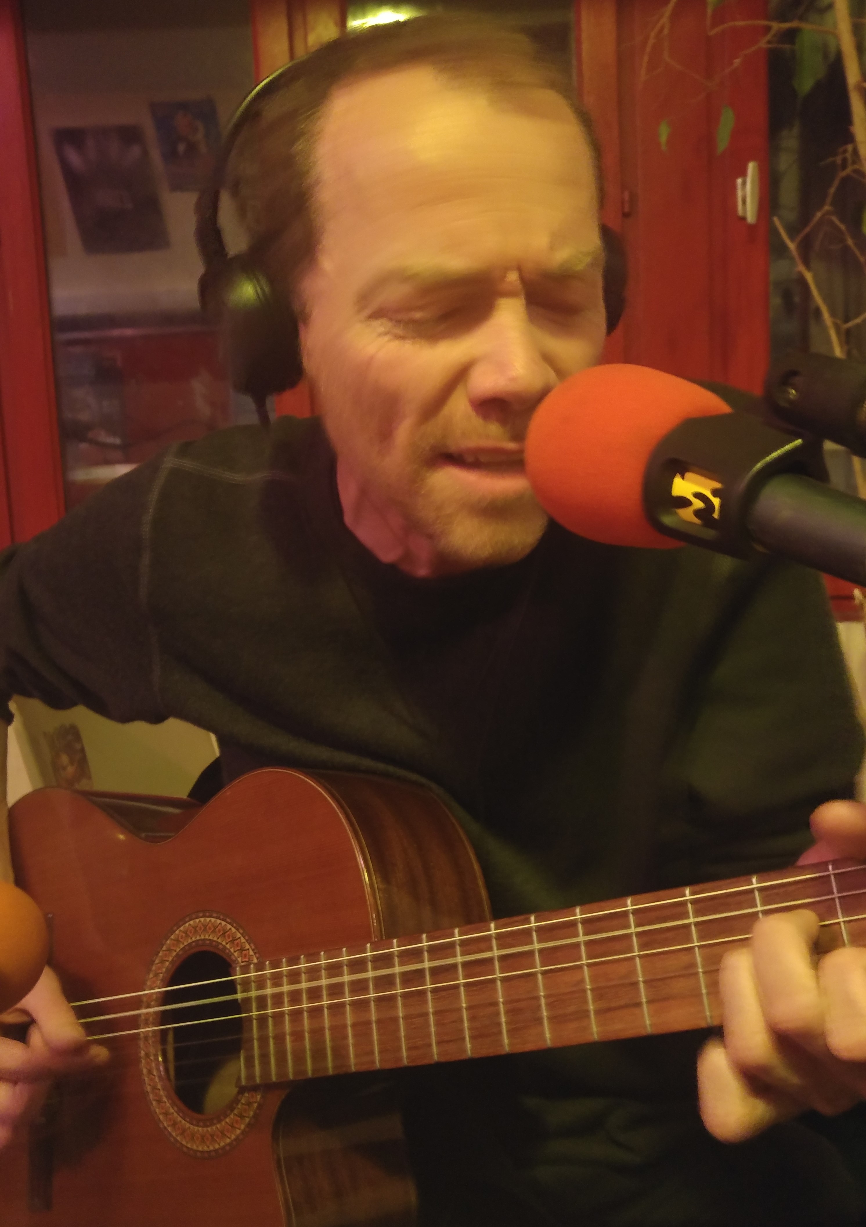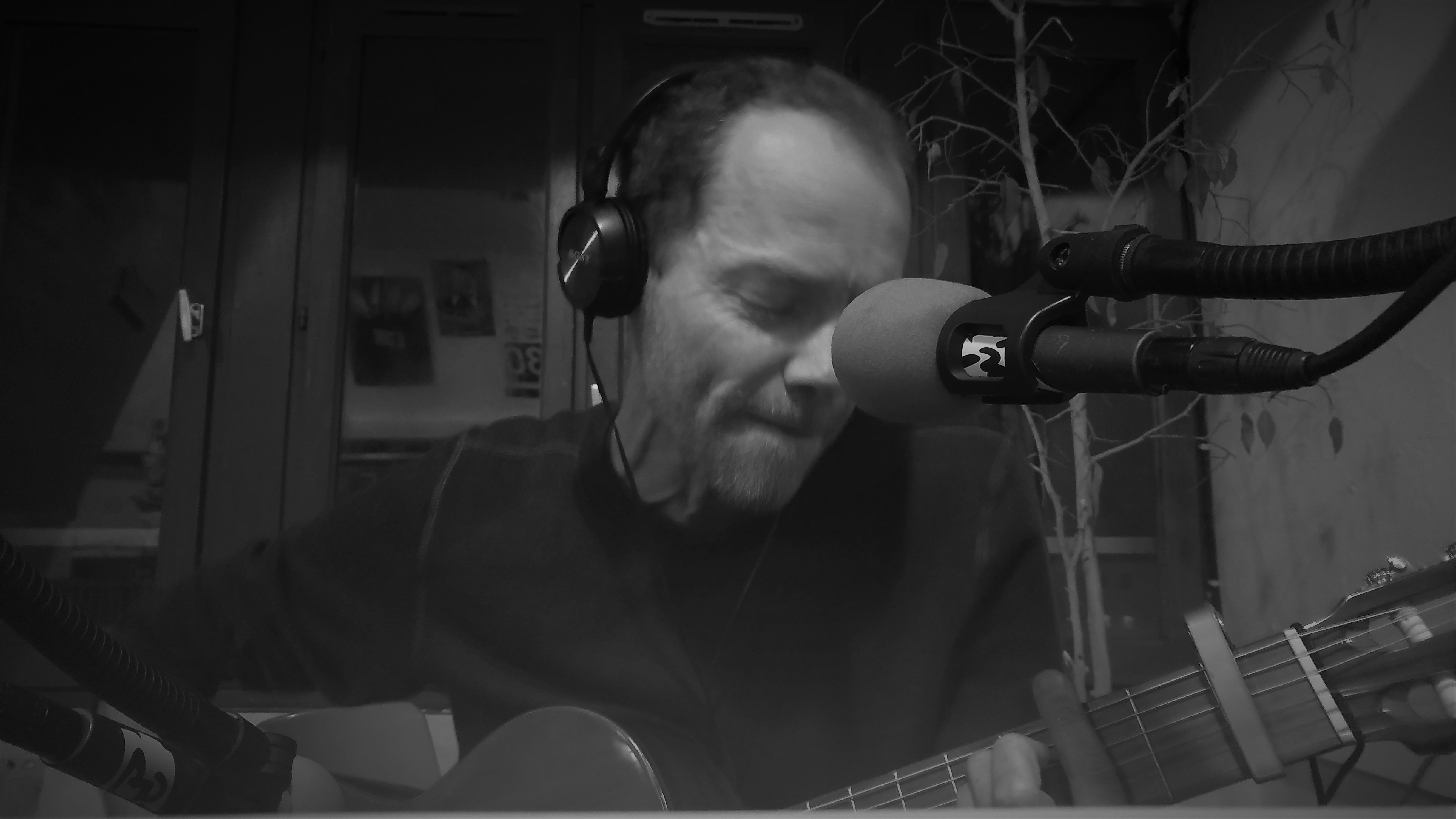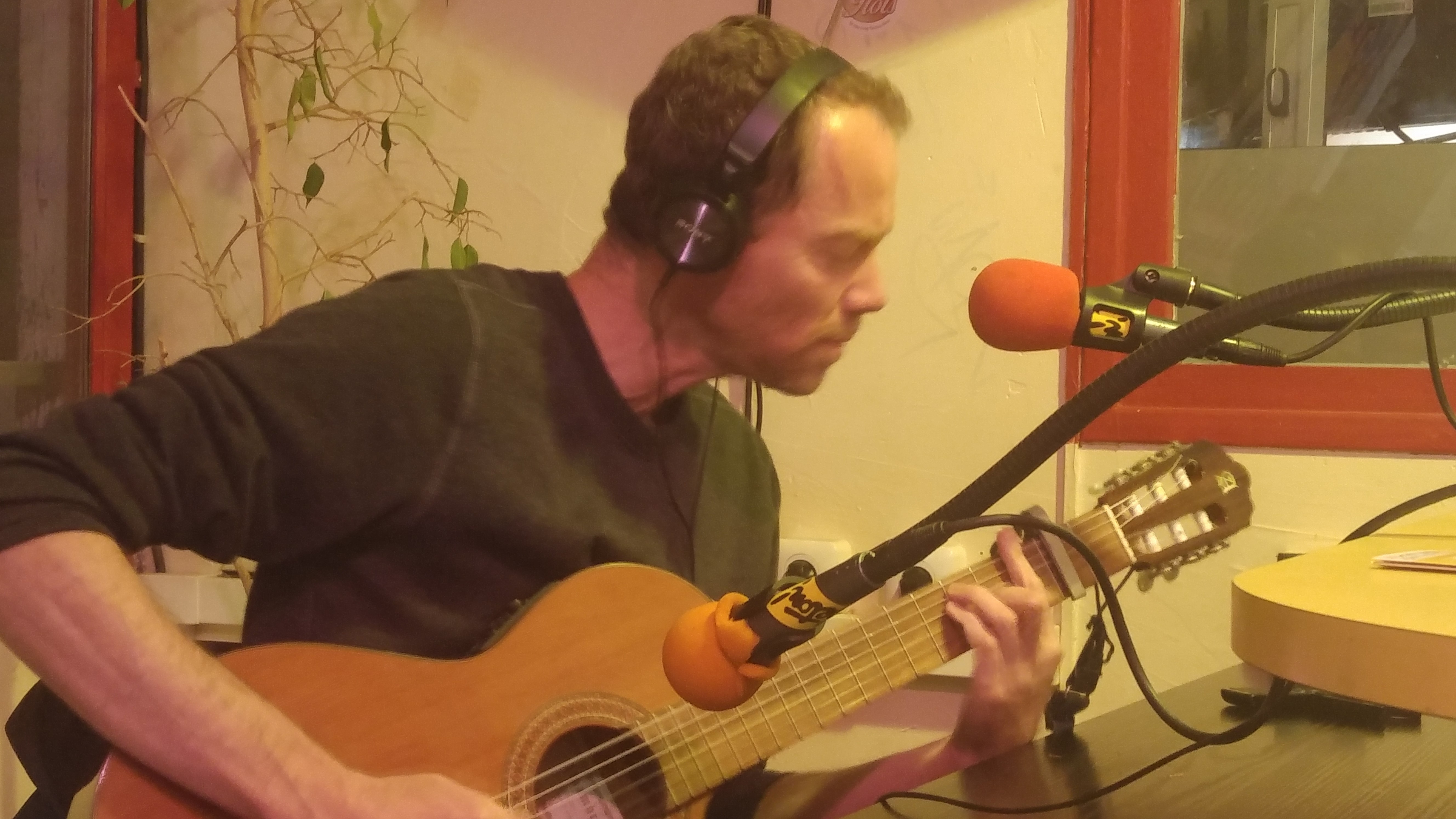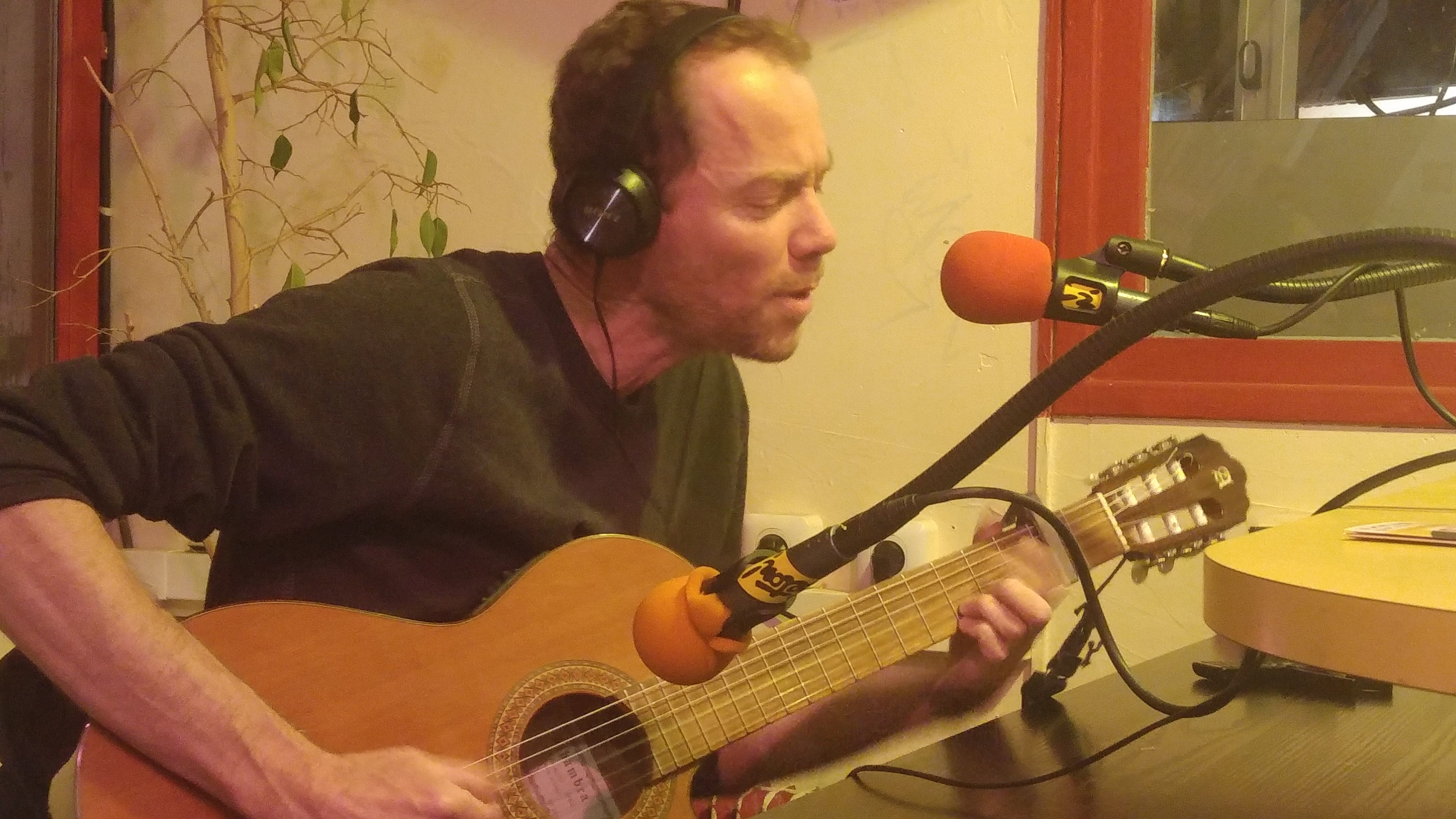 Aubry interprète quatre titres en live guitare-voix