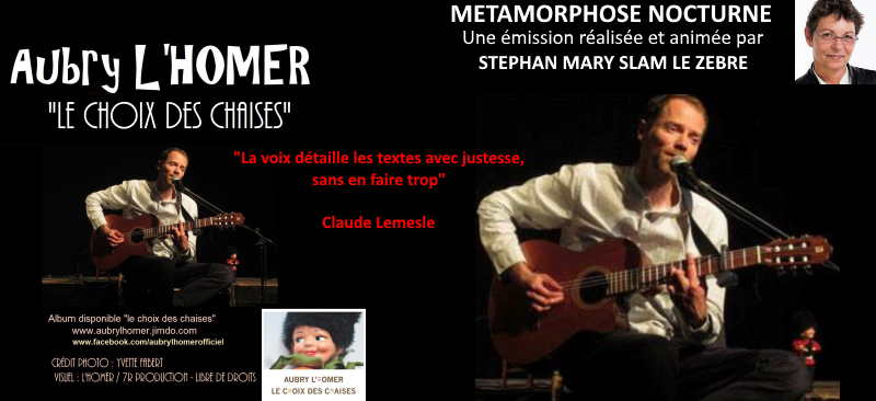 Aubry L’homer, auteur, compositeur, interprète nous emmène dans son univers teinté de poésies, d’amitiés d’humanité. Il présente son album « Le choix des chaises », treize titres, treize mélodies et de superbes textes très très bien interprétés. Claude Lemesle écrit sur cet album « La voix détaille le texte avec justesse, sans en faire trop ».