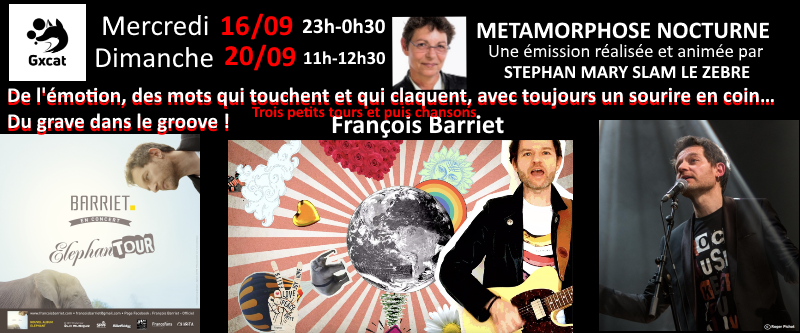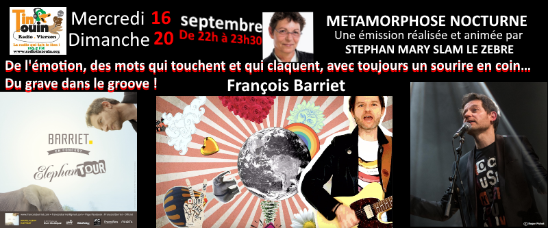 Dans son dernier album nostalgique, idéaliste, écologique, François Barriet ne lâche rien : ses idéaux, sa poésie, sa musique ! Auteur compositeur interprète, ce premier prix de Poésie du Printemps de Bourges en 2016 nous embarque dans son univers dans lequel l’Amour, l’Amitié, les problèmes de société, toujours abordés sous un angle de légèreté malgré la gravité des sujets.
